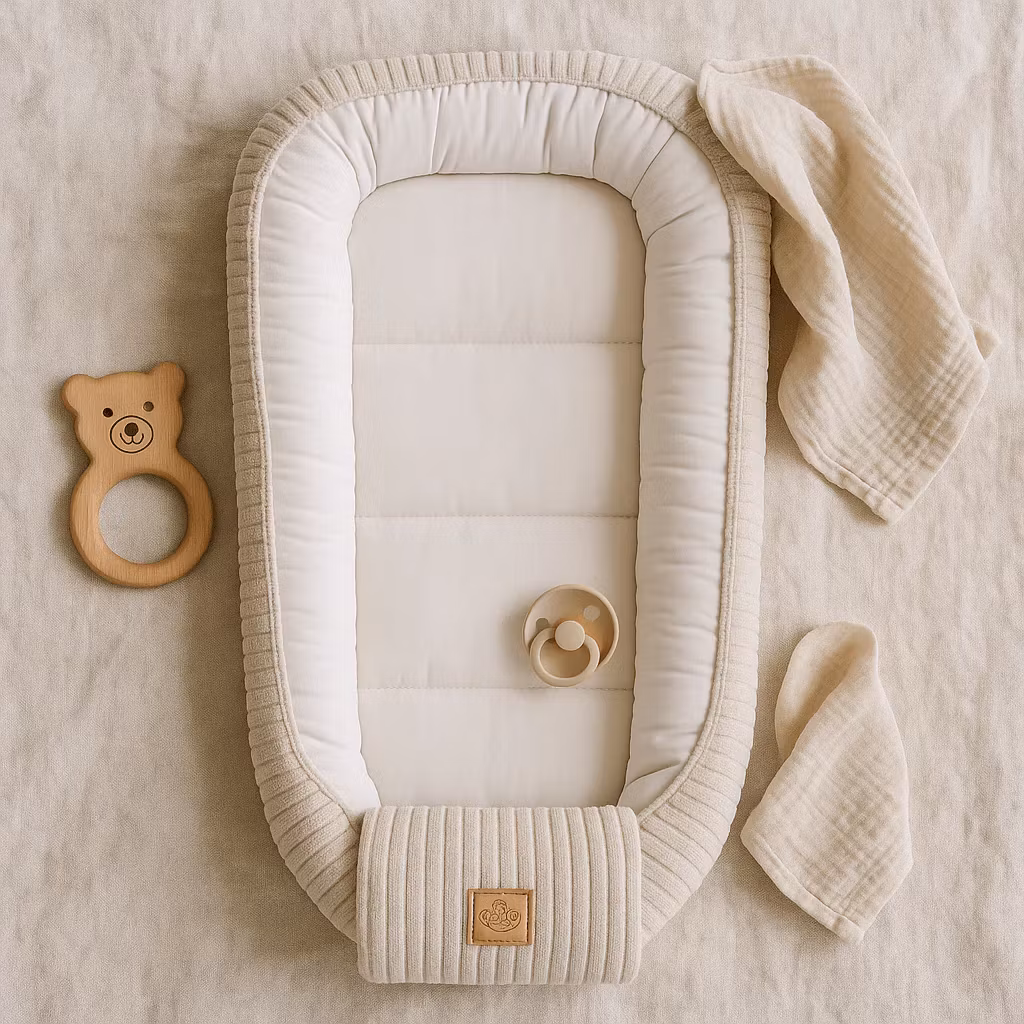 Babynestet skapar komfort och trygghet varje stund – perfekt för sömn, vila och lek. Tillverkat enbart av mjuka, certifierade material, skonsamma mot barnets känsliga hud.
